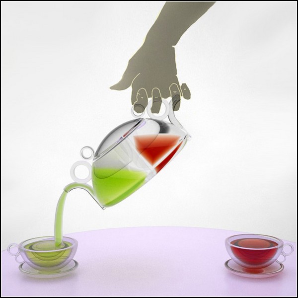 Одни люди любят черный чай, а другие - зеленый. Что с этим поделаешь? Обидно, если эти люди - любящая пара: чайник один, чай горячий, конфликт интересов... Так и до ссоры недалеко. Дизайнер Ewa Sendecka из Кракова придумала такой чайник, который придется по сердцам влюбленным и не даст им ссориться из-за пустяков.