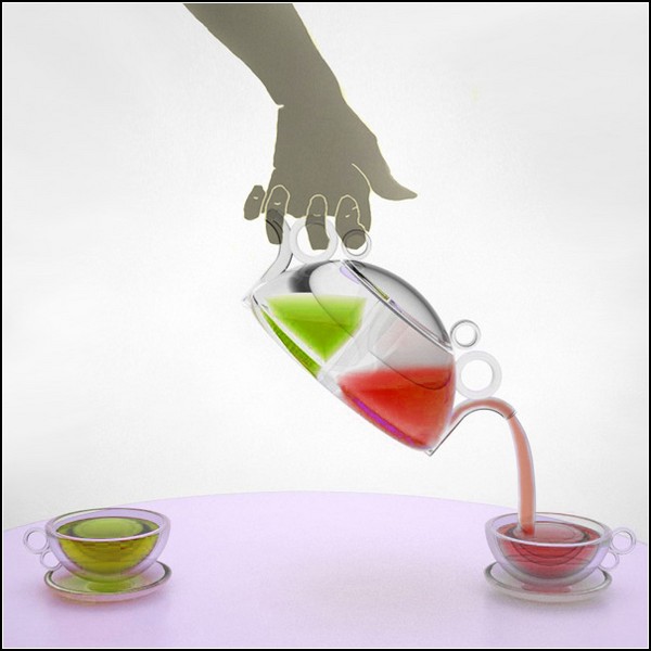 А решение на самом деле очень простое: если в одной емкости нельзя заварить два чая, нужно поделить ее перегородкой. Именно так и поступила со своим творением Ewa Sendecka: ее стеклянный заварочный чайник представляет собой два несообщающихся сосуда. Два носика - и вот, каждый может наливать в свою чашку тот чай, что ему по нраву. Между прочим, двухносиковые чайники уже есть - наверное, их любят почитатели группы "Чай вдвоем".