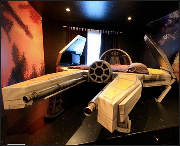 В отличие от предыдущей кровати, эта предназначена для мальчиков, причем необязательно тех, которые еще ходят в школу. Скорее даже наоборот, взрослые "мальчики" оценят такой космический корабль по достоинству, учитывая, что в нем можно не только спать, но и телевизор смотреть, и в компьютерные игры играть.
