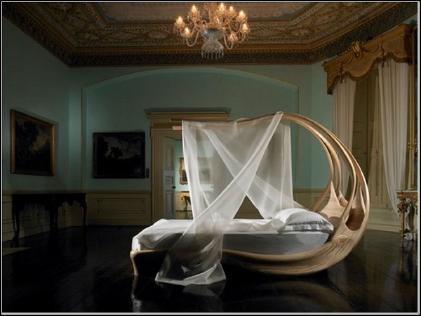 И напоследок - шикарная, поистине королевская кровать, - уже для взрослых королей, принцесс и принцев. Полностью деревянная, с воздушным балдахином, она называется Enignum Bed, а автор этого веиколепия - дизайнер-краснодеревщик Джозеф Уолш (Joseph Walsh).