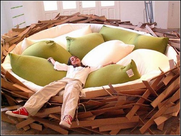 Еще одна полезно-игровая кровать для детворы. Сделана в виде большого гнезда, где, впрочем, вряд ли удобно спать, - больше валяться, дурачиться, драться подушками. В общем, такой замечательный "манеж" для дошкольников и детей младшего школьного возраста. Впрочем, не удивлюсь, если и взрослые соблазнятся возможностью поваляться в этом гнездышке от Мерав Эйтан (Merav Eitan) и Гастона Зарра (Gaston Zahr).