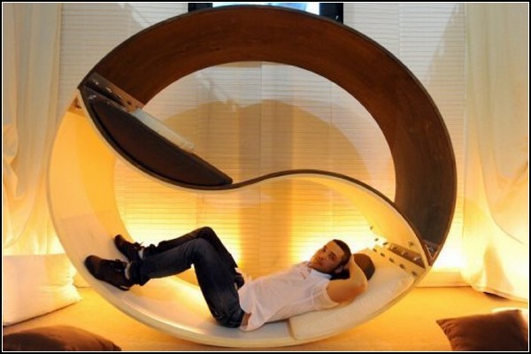 Выглядит эта кровать достаточно необычно, кажется весьма удобной, причем все это, вероятно, благодаря тому, что та часть кровати, на которую следует укладывать матрас, находится в подвешенном состоянии. Таким образом получается, что спящий человек лежит на почти левитирующем матрасе, а это только добавляет положительных эмоций и укрепляет сон.
